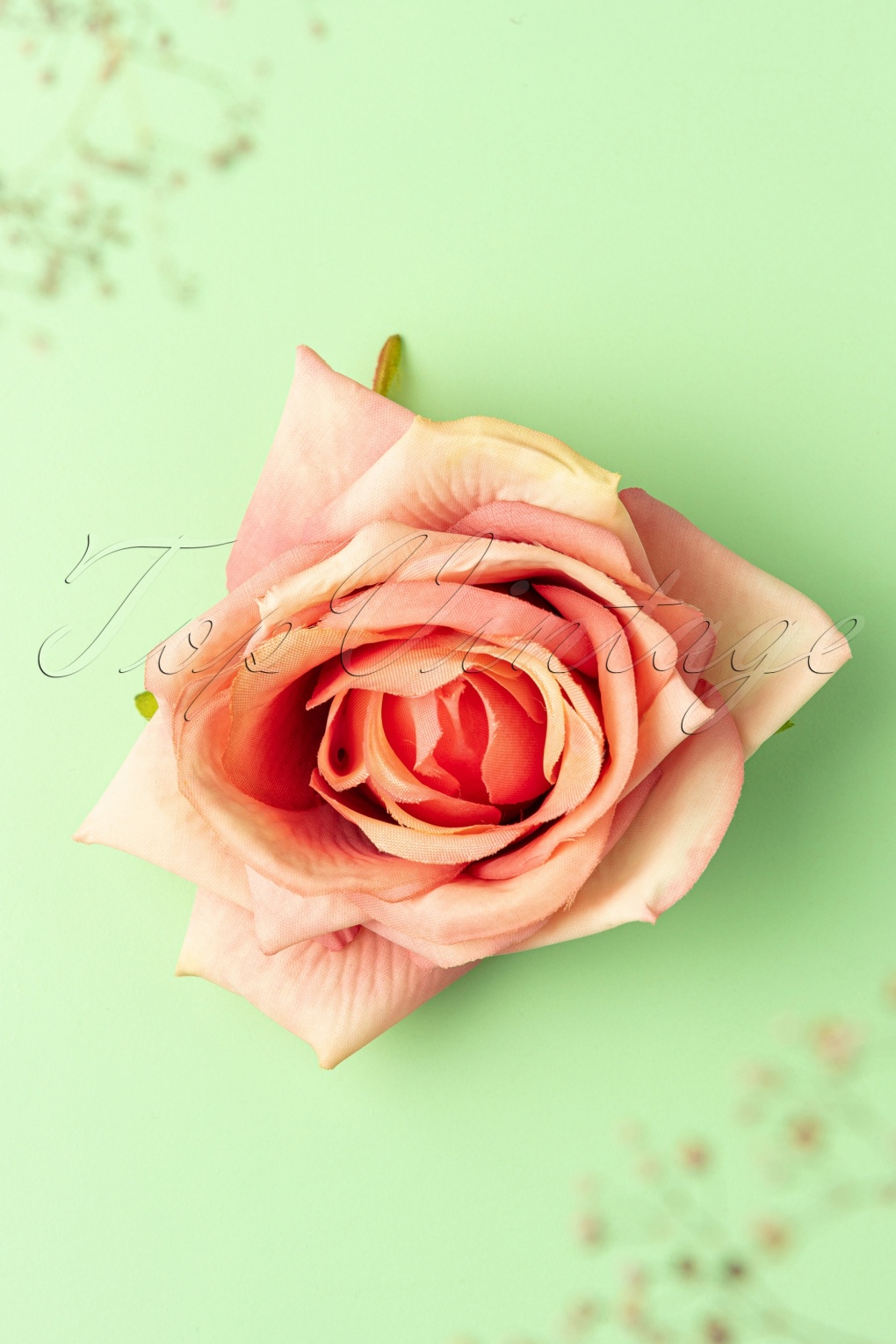 Verleihe deinem (vintage) Outfit den letzten Schliff mit dieser 50s Scented Love Flower Hair Clip in Coral. Die schöne Rose in Koral/Rosa ist versehen mit einer soliden silberfarbenen Haarklammer damit sie gut an ihrem Platz bleibt. Dank der silberfarbenen Anstecknadel mit Pinnverschluss kannst du sie nicht nur als Haarblume sondern auch als Brosche an deiner Kleidung tragen. „Time to bloom!“   * Silberfarbene Haarklammer  * Silberfarbene Anstecknadel mit Pinnverschluss