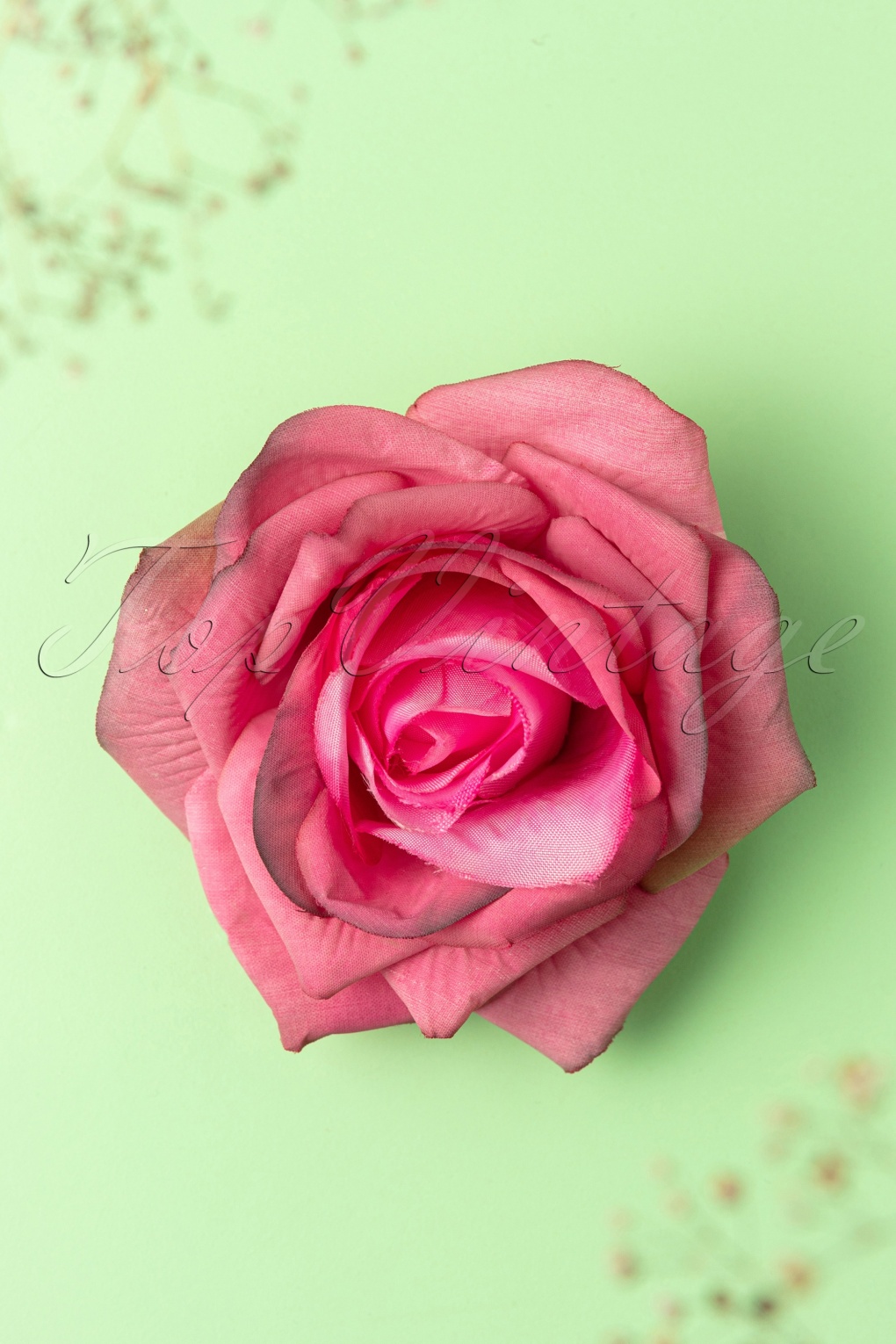 Verleihe deinem (vintage) Outfit den letzten Schliff mit dieser 50s Scented Love Flower Hair Clip in Pink. Die schöne rosa Rose ist versehen mit einer soliden silberfarbenen Haarklammer damit sie gut an ihrem Platz bleibt. Dank der silberfarbenen Anstecknadel mit Pinnverschluss kannst du sie nicht nur als Haarblume sondern auch als Brosche an deiner Kleidung tragen. „Time to bloom!“   * Silberfarbene Haarklammer  * Silberfarbene Anstecknadel mit Pinnverschluss