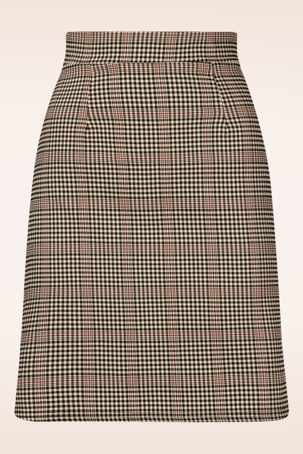 Karos und zauberhafter Charme bis fast zum Knie: Der Rock Lina wird hoch in der Taille getragen und hat einen attraktiven ausgestellten Schnitt. Er ist aus einem festen, aber elastischen, Bengalin-ähnlichen Stoff in Beige gefertigt und mit einem Karomuster in Schwarz und einem Hauch von Rot versehen.    * Ausgestellter Schnitt * Verdeckter Reißverschluss hinten * Endet bei einer Körpergröße von 1,70 m knapp über dem Knie * Exklusiv bei Topvintage erhältlich