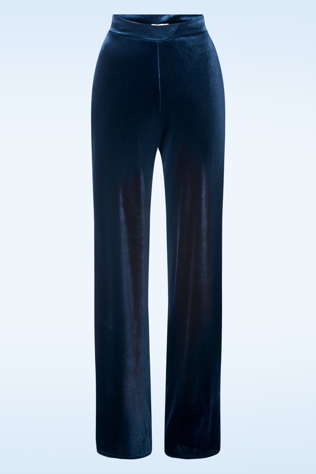 Diese vielseitige Hose ist ein Traum aus Samt! Victoria weiß das Licht einzufangen, denn sie wurde aus einem dehnbaren und weichen, samtartigen, marineblauen Stoff gefertigt, der sich herrlich trägt. Sie hat gerade, weite Hosenbeine, die jeder Figur schmeicheln. „Stay cosy but fabulous“, entscheide dich für Victoria! 😉 * Elastischer Hosenbund * Gerade, weite Hosenbeine  * Auch erhältlich in einem Modell mit weiten, ausgestellten Hosenbeinen  * Exklusiv bei Topvintage erhältlich