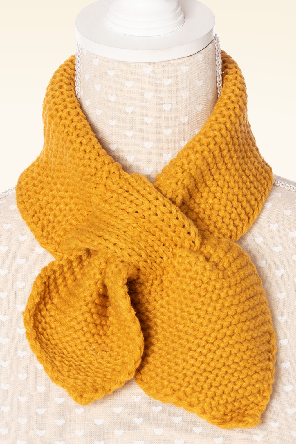 Dieser niedliche 50s Fru Fru Knitted Scarf in Red wird deinen Hals herrlich warm halten sobald die Temperaturen wieder sinken! Er ist hergestellt aus senfgelbem Acryl in Grobstrick und hat eine Lasche zum Durchziehen damit er an seinem Platz bleibt und so ein hübsches Detail ergibt. Fru Fru wird dich diesen Winter vor der Kälte schützen!    * Kurzer Schal * Weich und warm  * Eingestrickte Lasche zum Durchziehen