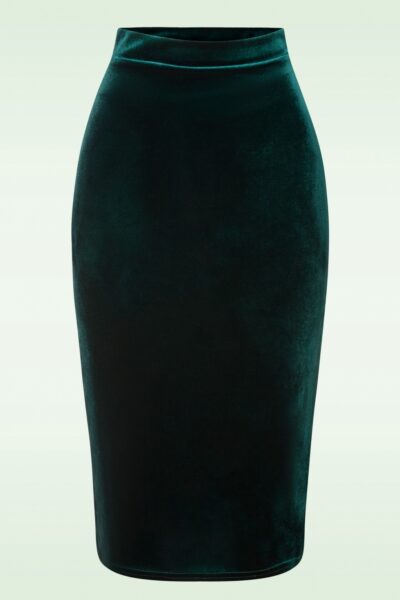 Mit diesem sexy und stilvollen 50er Glendie Velvet Bleistift Rock in Flaschen Grün bist du perfekt auf eine Party vorbereitet! In einem enganliegenden Modell das wie angegossen sitzt. Ein perfekter Kurvenbetoner der deine Schönheit ins rechte Licht rückt. Aus einem dehnbaren, dunkelgrünen, samt-ähnlichen Stoff der deine Rundungen umrahmt, aber nicht aufträgt. Und wir möchten dich warnen für den Effekt dieses Hinguckers… dieser Rock ist hot, hot hot!   * Hautenges, taillenhohes Modell * Schlupfrock * Ohne Gehschlitz  * Endet unterhalb des Knies bei einer Größe von 1.70m