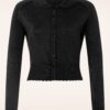 In dieses 50s Belle Bow Pointelle Top in Black wirst du dich sofort verlieben! Das Top hat einen schönen Rundhalsausschnitt mit verspielter Schleife und 3/4 Ärmeln, süß! Hergestellt aus einer geschmeidigen, elastischen, schwarzen Viskosemischung in Feinstrick mit einem klassischen Lochmuster. Ein vielseitiges Top, das nicht im Kleiderschrank, einer echten vintage Lady, fehlen darf!   * Rundhalsausschnitt * Angenähte Schleife * 3/4 Ärmel * Elastische Rippborten * Die Länge ist ausreichend um es zu einer normalen Hüfthose zu tragen
