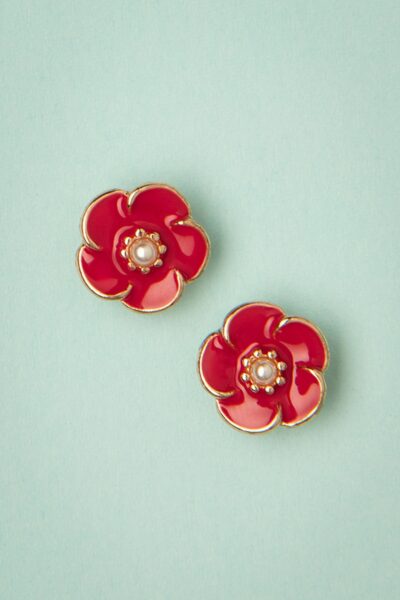 Klein aber oho! Diese 50er Small Rose Ohrstecker in Feuerrot sind aus goldfarbenem Metall hergestellt und sie werden geschmückt von emaillierten Blättchen in Feuerrot mit einer kleinen Synthetik-Perle in der Mitte. Die Sprache der Blumen versteht doch jeder, oder…?    * Ohrstecker  * Goldfarbenes Metall   * Synthetik-Perle  * Emailliert  * Handgefertigt  * Nickelfrei * Trage sie mit dem dazupassenden Armband für einen kompletten Look!