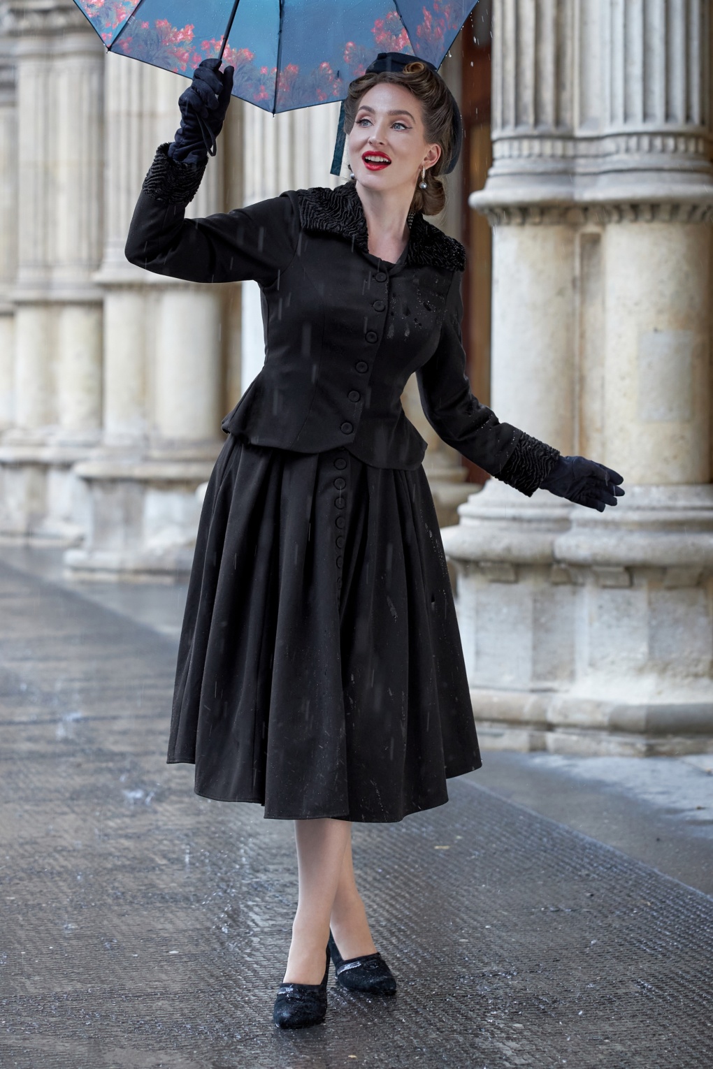 “A versatile swing skirt that seamlessly blends sophistication with a hint of nostalgia“. Dieser Rock stammt aus der neuen Kollektion der Marke Miss Candyfloss: “Vintage Glam Icons“. Die Kollektion erinnert an die glamourösen ersten Supermodels! Dieser feminine Swing Rock wurde aus einem festen, aber angenehm fallenden Stoffmix mit einem Hauch Viskose gefertigt. Mit Krita Lou lässt es sich unendlich kombinieren!   * Swing Modell * Messerfalten * Knopfreihe  * Mit Taschen! * Fällt bei einer Größe von 1,70 m über das Knie * Vollende deinen Look und kombiniere diesen Rock mit dem passenden Silivia Lou Blazer