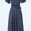 • Exklusiv bei Topvintage ~ Irene Polkadot Cross Over Swingkleid in Marineblau € 69,95