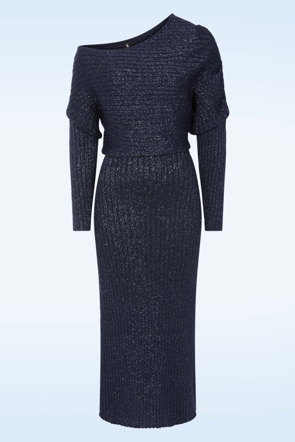 Midnight Mirage Midi-Strickkleid in Dunkelblau
