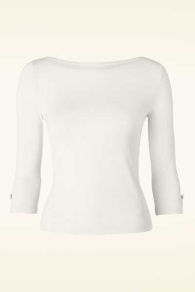 Elegant und hübsch ist dieses 50s Modern Love Top! Mit niedlichen Details, schlicht aber trotzdem elegant! Dieses Top hat einen schöne U-Boot-Halslinie und Ärmel mit einem kleinen Schlitz und einer Schleife, sooo süß! Hergestellt aus einem herrlich weichfließenden und dehnbaren Viskose-Mix in Ivory (Elfenbein) der seine perfekte Passform auch nach mehrfachem Waschen behalten wird. Ein klassisches und verwandlungsfähiges Top das nicht fehlen darf in dem Kleiderschrank von einer echten vintage Lady!   * 3/4 Ärmel * Geschmückt mit Schleifen