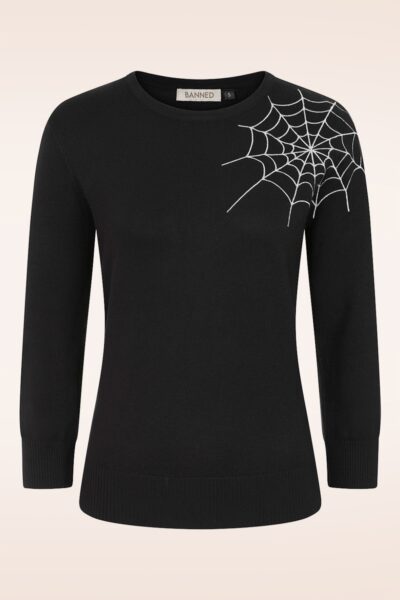 In diesem Netz ist man gerne gefangen! Mit diesem schwarzen Strickpullover verleihst du deiner Herbstgarderobe einen Hauch von gruseligem Glamour. Das Modell mit hohem Rundhalsausschnitt und eleganten ¾-Ärmeln ist aus einem weichen Viskose-Mischgewebe gefertigt, das herrlich angenehm zu tragen ist. Der Pullover besticht durch ein silbernes Spinnennetz-Motiv im Schulterbereich, das deinem Look einen verspielten Halloween-Touch verleiht, und lässt sich problemlos mit unzähligen Herbstoutfits kombinieren. * Hoher Rundhalsausschnitt * ¾-Ärmel * Elastische Rippbündchen * Ideale Länge auch in Kombination mit Low-Waist-Hosen