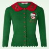 Dieser niedliche 40s April Bow Cardigan in Black hat unser Herz gestohlen! Klassisch und verspielt, mit eleganten 1/2 Ärmeln, einem süßen Bubikragen und hübschen, kleinen Schleifen. Hergestellt aus einem weichen, dehnbaren, schwarzen Viskose-Mix in Feinstrick. Unendlich verwandlungsfähig!   * Kurzes Modell * Mit verdeckten Druck-Knöpfchen * Elastischen Rippborten an den Ärmeln und am Saum