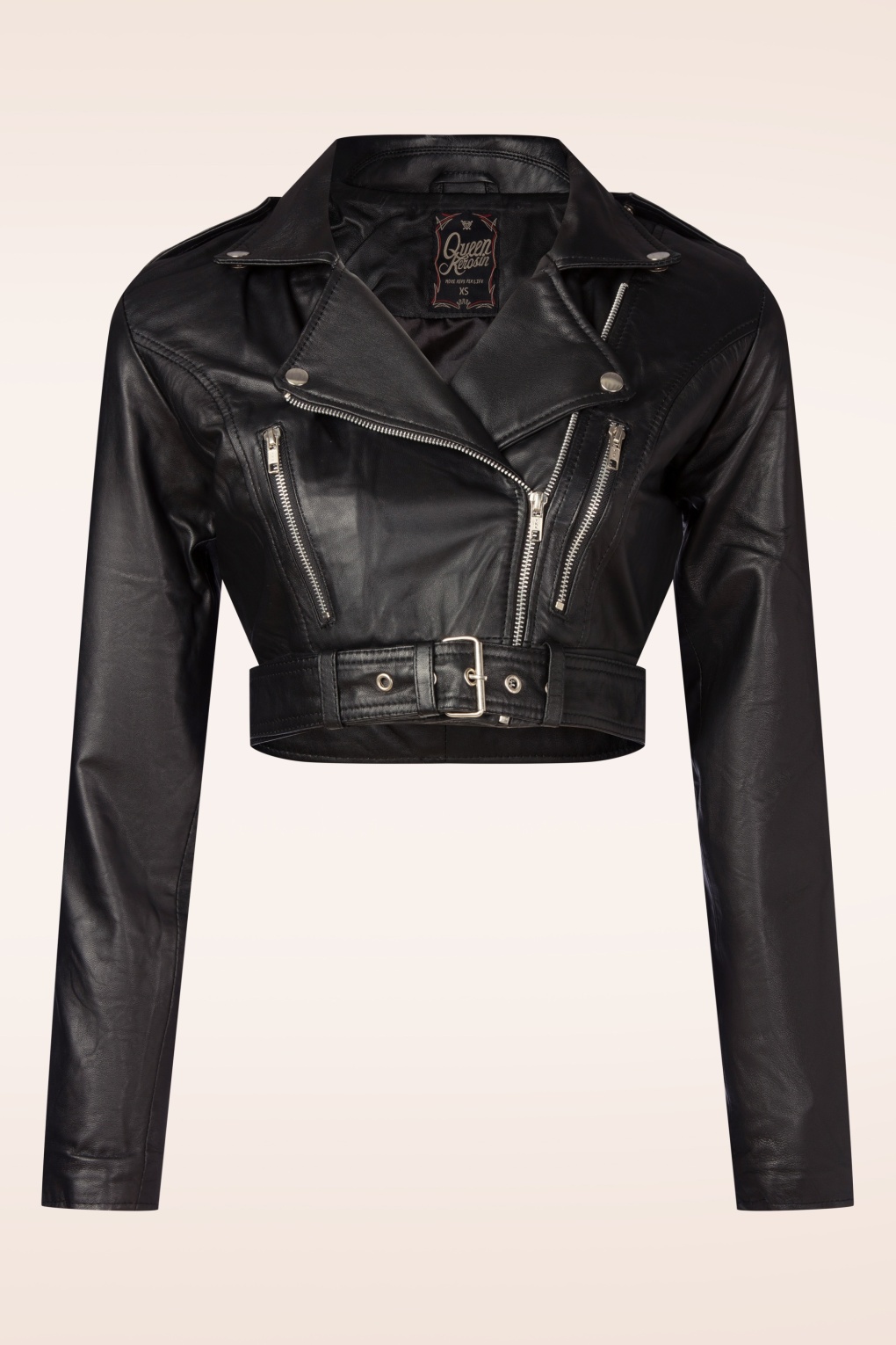 Verwegener Biker-Chic in edlem Schwarz! Diese schwarze Biker-Lederjacke ist ein zeitloses Must-have. Das kurz geschnittene Modell mit klassischen Biker-Details wie z. B. einem auffälligen Reverskragen und silberfarbenen Reißverschlüssen verleiht deinem Look sofort einen coolen Touch. Es ist aus hochwertigem, geschmeidigem Leder gefertigt, das mit der Zeit nur noch schöner wird. Ein vielseitiges Highlight mit unzähligen Styling-Möglichkeiten!   * Echtes Leder * Kürzere Länge * Spitzkragen mit Druckknöpfen  * Vollständig gefüttert  * Reißverschluss und Gürtel  * Mit Taschen!