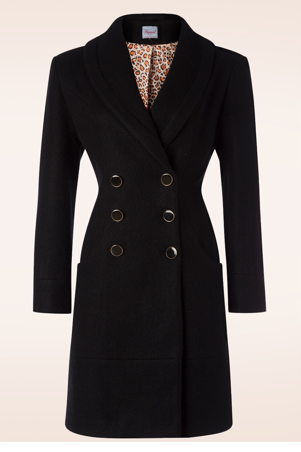 ‚Rocke‘ die kälteren Tage mit diesem Rocking Coat in Black! Klassisch mit einem Augenzwinkern nach der sog. „Mod“ mode aus den Sixties: dieses kastige Modell hat einen runden Kragen, Eingriffstaschen und auffällige, große Knöpfe. Hergestellt aus einem soliden, aber trotzdem weichen, schwarzen Stoff mit einem kleinen Anteil an Wolle der dich herrlich warm halten wird. Vollständig gefüttert mit einem satin-ähnlichen Stoff in einem Leopardenmuster. “This coat rocks, so do you! ;-)“   * Gerade geschnittenes Modell * Gefüttert * Runder Kragen * Lange Ärmel * Doppelte Knopfreihe mit goldfarbenen Knöpfen * Eingriffstaschen * Knieumspielende Länge bei einer Größe von 1.70m