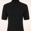 Dieser niedliche 40s April Bow Cardigan in Black hat unser Herz gestohlen! Klassisch und verspielt, mit eleganten 1/2 Ärmeln, einem süßen Bubikragen und hübschen, kleinen Schleifen. Hergestellt aus einem weichen, dehnbaren, schwarzen Viskose-Mix in Feinstrick. Unendlich verwandlungsfähig!   * Kurzes Modell * Mit verdeckten Druck-Knöpfchen * Elastischen Rippborten an den Ärmeln und am Saum