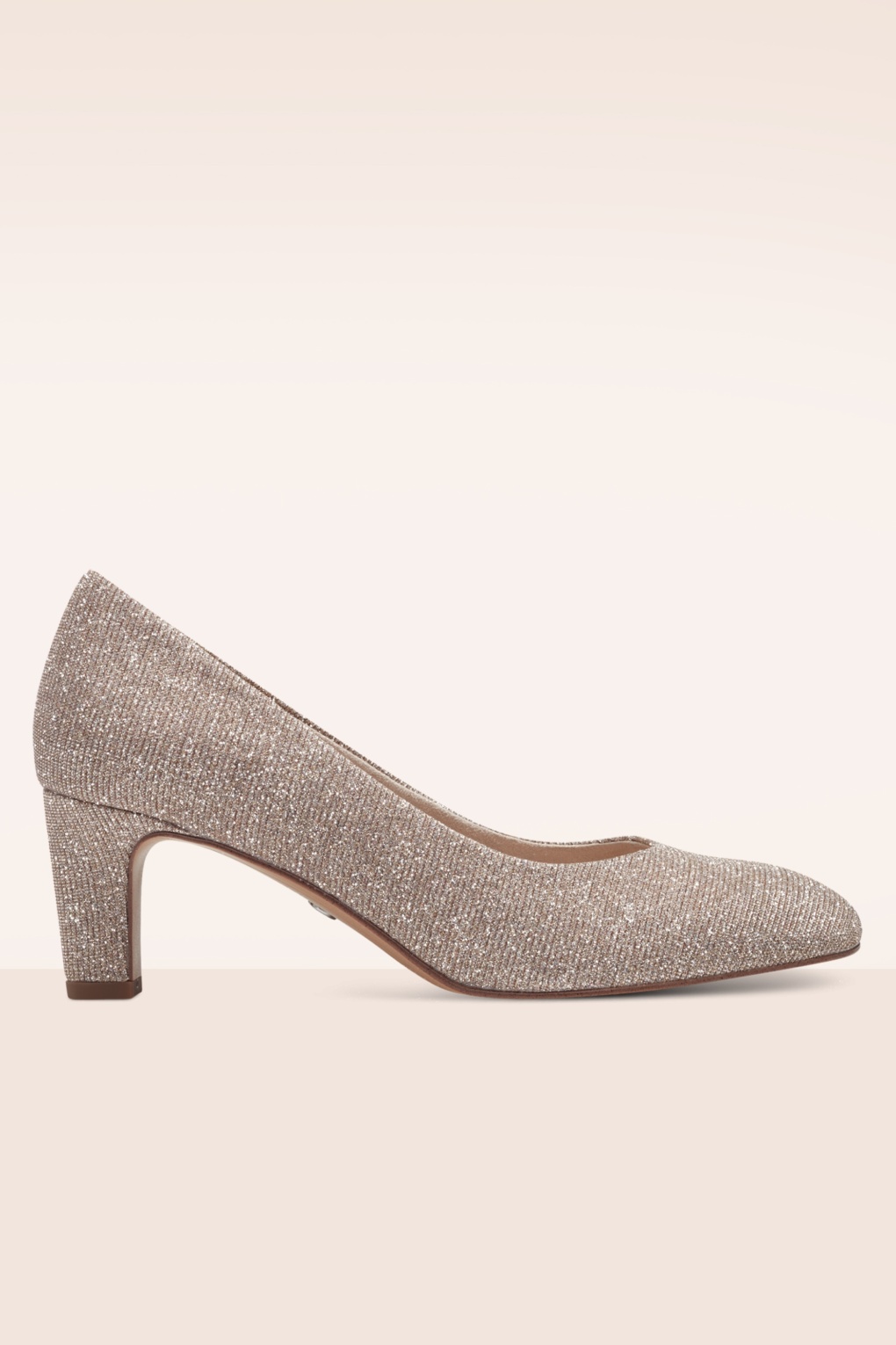 High Heels sind unsere Leidenschaft – aber oft protestieren unsere Füße leise ;-). Aber mit diesen Schätzchen – gefertigt aus einem funkelnden Stoff in Rose – kannst du deine flachen Schuhe getrost zu Hause lassen. Das weiche Fußbett, das sich mit der Zeit der Form deines Fußes anpasst und der kleine, aber elegante Absatz lassen dich wie auf Wolken laufen oder gar tanzen!   * Glitzer * Mandelförmige Schuhspitze * Eleganter Absatz * Bequemes ‚Touch-it‘ Fußbett * Anti-Rutsch Sohle und Absatz