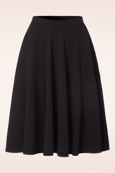 Bürotauglich, ausgehfein oder eine Shoppingtour… dieser Sheila Swing Skirt in Black wird der perfekte Begleiter sein! Für jeden Anlass perfekt geeignet, dank der klassischen und eleganten Ausstrahlung und dem herrlichen Tragekomfort! Diese Schönheit wird in Taillenhöhe getragen und wird dir eine wundervolle Sanduhr-Figur verleihen, oh la la. Hergestellt aus einem weichfließenden, dehnbaren, schwarzen Stoff der elegant bei jedem Schritt mitschwingen wird.  „All day, every day, Sheila all the way!   * Weiter Swingrock * Eingriffstaschen an den Seiten * Ohne Reißverschluss oder Knopfverschluss * Fällt bei einer Größe von 1,70 m etwas über das Knie