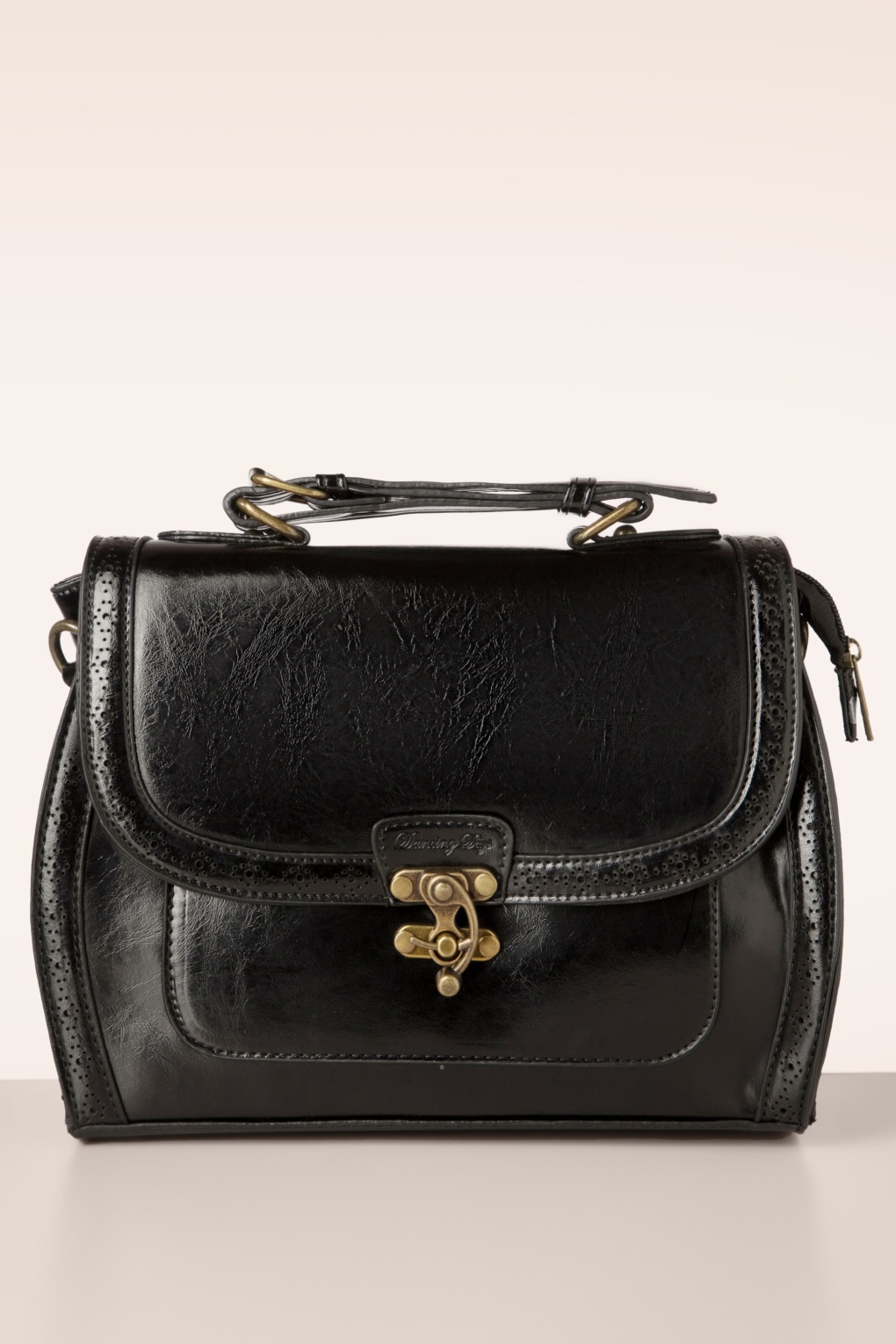 “Elegance carries its own charm, just like a classic handbag!“ Diese Tasche zeigt einen auffälligen, antiken, goldfarbenen Verschluss, ein blumenartiges Lochmuster und wurde aus einem schwarzen Kunstleder gefertigt und mit einem kurzen Henkel und einem langen, abnehmbaren Gurt ausgestattet, sodass du sie auf unterschiedliche Manieren tragen kannst.    * Antiker, goldfarbener Verschluss  * Reißverschluss * 3 Extra Fächern an der Innenseite, eins davon mit Reißverschluss * Extra Fach vorne * Kurzer Henkel * Wird mit einem losen, verstellbaren Henkel geliefert * Kann ‚crossbody‘ getragen werden * Ausreichend Platz für dein Telefon, dein Portemonnaie, deine Schlüssel und deinen Kulturbeutel