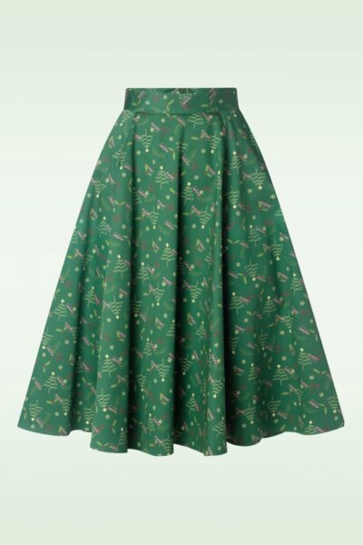 Habe fröhliche Weihnachten und trage unseren wunderschönen Swing Rock, der exklusiv bei Topvintage erhältlich ist. Gefertigt aus einem festen, aber leicht fallenden, dunkelgrünen Baumwollmix mit leichtem Stretch und einem prächtigen Weihnachtsmuster, das von unseren eigenen Inhouse-Designer entworfen wurde.   * Full Swing Modell; kann mit einem unserer Petticoats kombiniert werden  * ‚It has pockets!‘ * Verdeckter Reißverschluss hinten * Das Muster wurde von unseren eigenen Inhouse-Designern entworfen * Fällt bei einer Größe von 1,70 m über das Knie