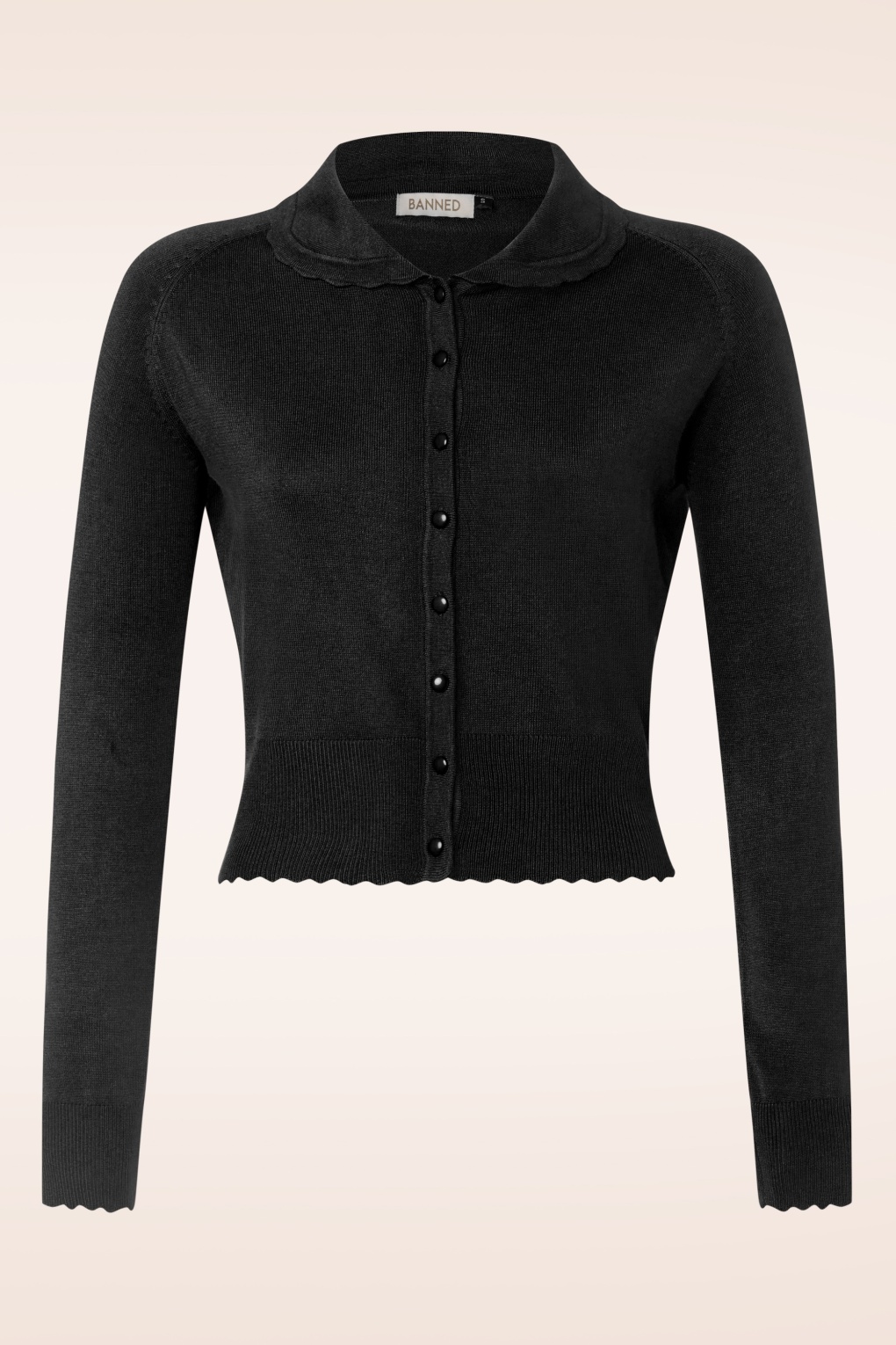 Kreire die meist phantastischsten Looks mit Trudy! Gefertigt aus einem dehnbaren, feingestrickten, schwarzen Viskosemix, der sich herrlich trägt. Die Kombinationsmöglichkeiten sind unendlich!   * Gewellte Borten * Lange Ärmel * Knopfreihe * Stretchy Rippbündchen * Lang genug, um mit einer normalen Hose kombiniert zu werden