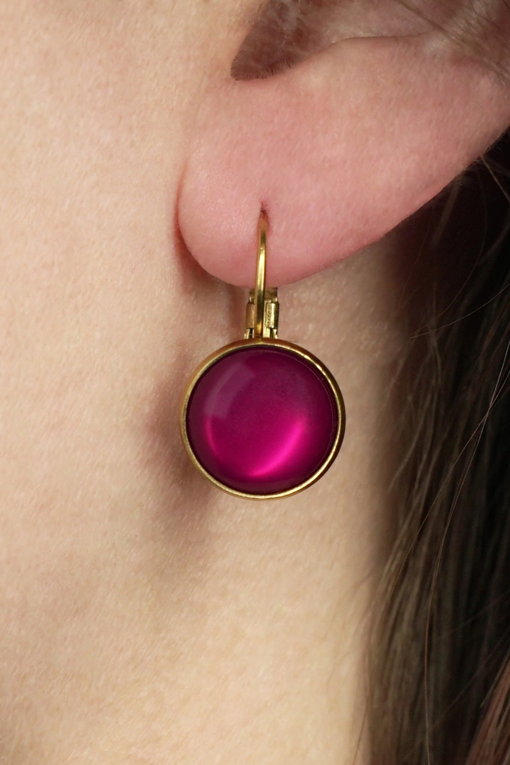 Bist du auf der Suche nach Ohrringen, die zu jedem deiner Outfits passen? Dann sind diese Schätzchen wie für dich gemacht! Ob du dich nun für den klassischen 50er Jahre Look entscheidest oder doch lieber den Boho Chic der 70er wählst – diese kurzen Ohrhänger sind federleicht und passen tatsächlich zu allem. Gefertigt aus einem vergoldeten Haken und versehen mit einem glänzenden Stein in Lilarot… “eye and ear candy!“ * Ohrhänger * Vergoldeter Leverback-Verschluss (rostfrei) * Verfärben nicht * Nickelfrei (hypoallergen)