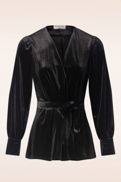 Dieses Top, im Stil einer Strickjacke, ist der perfekte Hingucker, der jedes Outfit komplementiert! Victoria weiß das Licht zu fangen, denn es wurde aus einem weichen und dehnbaren, schwarzen Samtstoff gefertigt, der sich herrlich trägt.  * Lange Puffärmel mit breiten Manschetten * Abnehmbarer Bindegürtel * Lang genug, um mit einer normalen Hose kombiniert zu werden