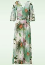 „Serving bold blooms and fresh vibes; this maxi dress stays as fresh as your plans, no matter how wild they get.“ Flora hat einen spielerischen Kragen, eine Knopfreihe und einen Stoffgürtel in der Taille, damit diese schön akzentuiert wird. Gefertigt aus einem geschmeidigen und dehnbaren, glatten Slinky Stoff in Creme mit einem grafischen Blumenmuster in Blau, Grün und einem Hauch Braun, versehen mit einem StayFresh Coating, * Maxikleid * Kleiner Kragen * Knopfreihe * Lange (leicht puffende) Ärmel mit Manschetten * Abnehmbarer Stoffgürtel * Endet bei einer Größe von 1,70 m bewas oberhalb des Bodens