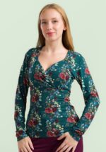 Nachhaltig schick in Tannengrün mit traumhaftem Rosenmuster. Dieses langärmelige dunkelgrüne Oberteil mit Rosenprint hat einen eleganten gekreuzten Ausschnitt und ist aus einem weichen, elastischen EcoVero-Viskose-Mix gefertigt, der einfach herrlich zu tragen ist. * Lange Ärmel * Oberteil mit Wickeloptik * Passend für Hosen mit normaler Leibhöhe