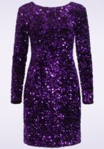 Zu viele Pailletten gibt es nicht! – Du wirst einen unvergesslichen Eindruck diese Festtage hinterlassen, trägst du dieses Serena Pailletten Kleid! Es wurde mit unendlich vielen funkelnden Pailletten in Tieflila übersät und komplett gefüttert, damit du ein luxuriöses und komfortables Gefühl erleben kannst. * U-Boot Ausschnitt * V-Rücken * Komplett gefüttert für den Extra Komfort * Lange Ärmel * Verdeckter Reißverschluss hinten * Endet bei einer Größe von 1,70 m oberhalb des Knies