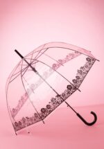 Praktisch und stylish dieser 60s Dentelle Flower Transparent Dome Umbrella, man sieht genau wo man läuft im Regen! Dieser süße Regenschirm mit schwarzen Blumen lässt einem nach Regen verlangen! Der transparente Schirm ist hergestellt aus wasserfestem Polyester und vollendet mit einem schwarzen Handgriff aus Kunststoff. Der Schirm kann mit einem Knopfdruck geöffnet werden. I’m singin‘ in the rain… looking fab as always! * 100% wasserdicht * Solider Handgriff * Öffnet ganz einfach mit einem Knopfdruck
