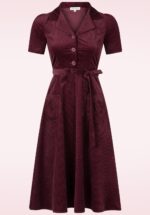 D’Laine ist ein wahr gewordener Vintage-Traum! Das Kleid mit Rundkragen, Knopfleiste und ¾-Ärmeln wirkt besonders weiblich und unglaublich elegant. Ab der Taille fällt es als weiter, fließender Swingrock, der eine tolle feminine Silhouette zaubert. Das bordeauxrote Modell ist aus einem robusten, aber dennoch weichen Mischgewebe mit einem Hauch Viskose gefertigt, das dank seines Stretchanteils für eine schöne Passform sorgt. Manchmal werden Träume wirklich wahr! 😉 * Weiter Swing-Style * V-Ausschnitt * Rundkragen * Knopfleiste * ¾-Ärmel * Kann mit einem unserer Petticoats kombiniert werden * Endet bei einer Körpergröße von 1,70 m unterhalb des Knies
