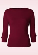 Elegant und süß ist dieser 50s Addicted Sweater in Burgundy von Banned! Schlicht aber trotzdem ganz speziell mit den vielen, niedlichen Details 😉 Dieses Top hat eine schöne U-Boot-Halslinie und schmeichelnde 3/4 Ärmel mit einem kleinen Schlitz die mit angenähten Schleifchen versehen sind, sooo süß! Hergestellt aus einem herrlich weichen und fließenden Viskose-Mix in Feinstrick in Burgund der seine perfekte Passform auch nach mehrfachem Waschen behalten wird. Ein vielseitiges, klassisches Top das in dem Kleiderschrank von einer Vintage Lady nicht fehlen sollt. Der Name sagt es schon; wir sind süchtig nach diesem Juwel! * U-Boot-Halslinie * 3/4 Ärmel mit Schleifchen * Die Länge ist ausreichend um es zu einer Hüfthose zu tragen