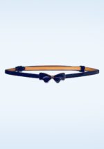 Dieser 50er Lana Bow Gürtel in Dunkel Blau ist ein classy Gürtel im Vintage Stil der jedes Outfit perfekt ergänzen wird. Dieser schmale, verstellbare Gürtel ist hergestellt aus dunkelblauem Lackleder-Imitat mit einer eleganten, goldfarbenen Schleife, très chique! Ein Muss für alle vintage Ladies! * Wird mit einem goldfarbenen Hakenverschluss in Form einer Schleife verschlossen * Verstellbar