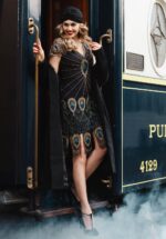• Amelia Peacock Flapper-Kleid in Schwarz und Blau