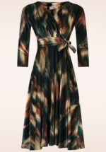 Fühl dich rundum weiblich in diesem Aria Floral Swingkleid! Gefertigt aus einem geschmeidigen und dehnbaren, leicht glänzenden Slinky Stoff in Smaragdgrün, der ein wunderschönes Blumenmuster in Herbstfarben zeigt – es ist federleicht und verknittert nicht. * Semi-Swing Modell * V-Ausschnitt * Feste gefütterte Wickeloptik * 3/4 Ärmel * Plissierter Taillenbund mit fester Schleife * Kein Reißverschluss oder Knopf; anziehen & ‚ready to go‘! * Fällt bei einer Größe von 1,70 m über das Knie * Melissa ist 1.78m groß