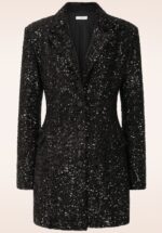 Glamouröser Glitzer für deinen großen Auftritt: Dieses Blazerkleid ist ein echter Hingucker und einfach perfekt für die Festtage! Das geknöpfte Modell mit elegantem Reverskragen ist aus einem etwas dickeren, aber geschmeidigen schwarzen Paillettenstoff mit leichtem Stretchanteil gefertigt. Für höchsten Tragekomfort ist das Kleid vollständig gefüttert. * Blazerkleid * Lange Ärmel * Knopfleiste * Pattentaschen an der Vorderseite * Vollständig gefüttert * Endet bei einer Körpergröße von 1,70 m knapp über dem Knie