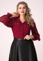 Elegant bis ins kleinste Detail: Diese wunderschöne Bluse ist aus einem festen, aber dennoch geschmeidigen tiefroten Stoff (nicht elastisch!) gefertigt. Durch den Bambusanteil im Gewebe ist das Modell wunderbar angenehm zu tragen. * Reverskragen * Lange transparente Puffärmel mit elastischen Smok-Manschetten * Knopfleiste * Ideale Länge, um die Bluse auch zu Low-Waist-Hosen zu tragen