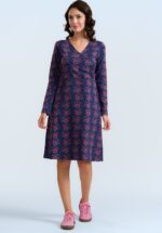 Attraktiver und strahlender als die Wettervorhersage: Dieses langärmelige Kleid lässt dich schon beim Anziehen aufblühen! Es hat einen wunderschönen Ausschnitt mit Twist-Detail und geht von der Taille aus in einen fließenden, halbschwingenden Rock über. Der weiche, elastische Bio-Baumwollmix in Dunkelblau ist mit einem tollen Blumenprint in Pink und Orange versehen. * Semi-Swing-Modell * V-Ausschnitt * Twist-Detail * Lange Ärmel * Kein Reißverschluss, keine Knöpfe: einfach überziehen und los geht’s! * Endet bei einer Körpergröße von 1,70 m unterhalb des Knies