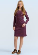 Retro-Flair mit zeitgemäßem Tragekomfort! Dieses langärmelige A-Linien-Kleid mit leichtem U-Boot-Ausschnitt bietet dir ausreichend Bewegungsfreiheit und ist dadurch ein absoluter Favorit für tolle Looks im Alltag. Das Modell ist aus einer festen, aber dennoch geschmeidigen Bio-Baumwollmischung mit leichtem Stretchanteil und einem Retro-Print in Ziegelrot, Gelb und Blau gefertigt – bequem, stylisch und nachhaltig zugleich! * Ausgestellter Schnitt * Leichter U-Boot-Ausschnitt * Kein Reißverschluss, keine Knöpfe: einfach reinschlüpfen und los geht’s! * Endet bei einer Körpergröße von 1,70 m knapp unterhalb des Knies