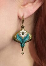 Arabella Ohrringe in Weiß und Türkis‚Oui, oui’… das Design dieser Ohrringe erinnert an antike französische Anhänger! Gefertigt aus vergoldetem Messing, versehen mit einem Anhänger in der Form einer Blume in Blau und Weiß, der in ihrem eigenen Atelier in Eindhoven (NL) handbemalt und glasiert wurde. * Creolen mit Scharnierverschluss * Vergoldetes Messing * Nickelfrei (hypoallergen) * Wird in einer schönen Dose geliefert