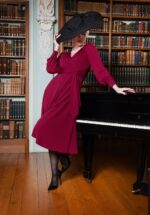 Bei diesem Anblick verstummt jeder Raum! Dieses Wickelkleid wurde von unseren hauseigenen Designern entworfen und ist eine Hommage an zeitlose Eleganz, inspiriert von Ava Gardners legendärem Stil im Film „Die barfüßige Gräfin“ (1954). Das Oberteil mit V-Ausschnitt besticht durch seine Wickeloptik, die langen, leicht gepufften Ärmel mit Manschetten und den fest vernähten Taillengürtel. Der Wickelrock fällt herrlich locker und fließend. Das Modell ist aus einem glatten, geschmeidigen und elastischen Stoff in Weinrot gefertigt. Ein sanft fallendes Traumkleid mit heißer Wirkung! * Wickelkleid * Gefüttertes Oberteil * Lange, leicht gepuffte Ärmel mit Manschetten * Fest vernähter Gürtel für eine besonders betonte Taille * Rock mit Wickeldetail * Verdeckter Reißverschluss an der Seite * Die wunderschöne Julia Fiore (Fiorevanil) ist 1,70 m groß. Sie trägt ihre eigenen Vintage-Schätze als Accessoires. * Bitte beachte: Die Farbe des Artikels im Video kann von der tatsächlichen Farbe abweichen