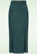 Petrolfarbene Wolle in einem formvollendeten Schnitt: Dieser Midirock in einem gedeckten Farbton hat eine starke Ausstrahlung. Das vielseitig kombinierbare Modell ist aus einer weichen und geschmeidigen Wollmischung in Petrol gefertigt. * Figurbetonter Schnitt * Midi-Länge * Abnehmbarer Gürtel * Mit Taschen! * Reißverschluss und Knopf hinten * Gehfalten mit Zierknöpfen * Endet bei einer Körpergröße von 1,70 m auf Wadenhöhe * Ideal dazu: die passende Weste für einen stylischen Look von Kopf bis Fuß
