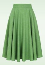 Einfach schick und unglaublich vielseitig! Dieser melierte Swingrock in Grün mit dezenten hellblauen Akzenten ist ein echter Klassiker mit modernem Flair. Das Modell mit praktischen Taschen hat einen schmeichelhaften, femininen Schnitt und schwingt sich bei jedem Schritt wunderschön mit. Es ist aus einem festen, aber dennoch geschmeidigen, grob gewebten Mischgewebe mit einem Hauch Viskose gefertigt, das angenehm zu tragen ist und deinem Look eine zarte Struktur verleiht. * Weiter Swing-Style: kann mit einem Petticoat kombiniert werden * Mit Taschen! * Reißverschluss mit Haken auf der Rückseite * Endet bei einer Körpergröße von 1,70 m unterhalb des Knies