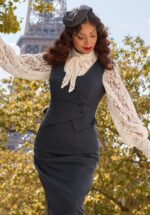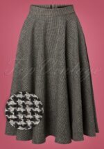 Sophie Houndstooth Rock in GrauErlebe einen schwungvollen Winter in diesem 40s Sophie Houndstooth Skirt in Grey! Dieses Schätzchen im Stil der 40er Jahren wird in Taillenhöhe getragen und ist ein eleganter und klassischer Swingrock. Hergestellt aus einer gewebten, dickeren aber fließenden Wollmischung (nicht dehnbar) in einem klassischen Hahnentrittmuster in Grau und Schwarz. Außerdem ist der Rock vollständig gefüttert, herrlich angenehm und trageleicht. Auch der Winter kann eine magische Saison sein, vor allem mit Sophie in deinem Kleiderschrank 😉 Von unserer geliebten Kundin Veera als Favorit gewählt. Veera: „TopVintage ist einer meiner Lieblings-Onlineshops! Ich liebe es, bei TopVintage einzukaufen. Sie haben eine wunderbare Auswahl, einen fantastischen Kundenservice und einen sehr schnellen Versand. TopVintage hat mich noch nie enttäuscht. Sie haben den Retro-Einkauf so viel einfacher gemacht! Und dieses Outfit ist einfach tadellos! Das Material des Oberteils ist absolut bequem und leger. Ich liebe die Passform und den Schnitt. Der Rock ist sehr schön und die Taschen sind super. Der Stoff ist ein Traum! Er ist dick und warm. Das perfekte Outfit für den Winter!“ * Swingrock * Seitliche Eingrifftaschen * Reiß- und Knopfverschluss hinten * Vollständig gefüttert * Die hübsche Veera (@daisy.damsel) ist 1.70m groß; die Accessoires sind Privat-Besitz * Das hübsche, blonde Model Miss Victory Violet ist 1.70m groß