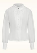 The Poet’s Bluse in WeißMit diesem Teil schreibst du deine eigene Style-Geschichte! Die wunderschöne weiße Bluse mit langen Puffärmeln, plissiertem Rüschenkragen und Schleifendetail ist aus einem glatten und geschmeidigen Stoff (nicht dehnbar) gefertigt. * Plissierter Stehkragen * Lange Puffärmel mit Manschetten * Schleifendetail * Knopfleiste * Ideale Länge auch in Kombination mit Low-Waist-Hosen