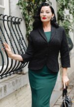 “You can never go wrong with black and a blazer!“ Beatrice ist tailliert, zeigt einen abgerundeten Kragen und wurde aus einem etwas dickeren, dehnbaren Jaquard Stoff in Schwarz gefertigt, der sich herrlich komfortabel trägt! * Leicht tailliert * Abgerundeter Kragen * Nicht gefüttert! * Knopfverschluss * Lang genug, um mit einer normalen Hose kombiniert zu werden * Exklusiv bei Topvintage erhältlich