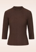 Schlichtheit ist der Inbegriff von Eleganz. Stylisch, bequem und mit einem Hauch von Nachhaltigkeit – dieses Oberteil ist echt ein Must-have! Das schokoladenbraune Modell mit kleinem Stehkragen und ¾-Ärmeln ist aus einem dehnbaren, strukturierten Recycling-Mischgewebe gefertigt und passt perfekt zu jedem Anlass. In Kombination mit der passenden Hose entsteht ein eleganter Look, der mühelosen Chic und Komfort ausstrahlt. * Kleiner Stehkragen * ¾-Ärmel * Passend für Hosen mit normaler Leibhöhe * Ideal dazu: die passende Hose Josie für einen stylischen Look von Kopf bis Fuß * Exklusiv bei Topvintage erhältlich