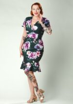 Exklusiv bei Topvintage ~ Kamila Floral Etuikleid in Schwarz und Multi