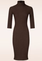 Schlichtheit ist der Inbegriff von Eleganz. Stylisch, bequem und mit einem Hauch von Nachhaltigkeit – dieses Kleid ist ein echtes Must-have! Das schokoladenbraune Modell mit kleinem Stehkragen und ¾-Ärmeln ist aus einem dehnbaren, strukturierten Recycling-Mischgewebe gefertigt und passt perfekt zu jedem Anlass. * Figurbetonter Schnitt * Kleiner Stehkragen * ¾-Ärmel * Kein Reißverschluss: einfach reinschlüpfen und los geht’s! * Endet bei einer Körpergröße von 1,70 m knapp unterhalb des Knies * Exklusiv bei Topvintage erhältlich
