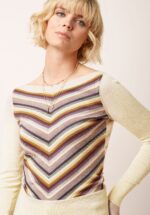 Dieses Oberteil passt super zu einem Retro-Rock oder einer Retro-Hose! Es ist aus einer weichen und dehnbaren Bio-Baumwollmischung gefertigt und besticht durch bunte Streifen und eingewebte Glitzerfäden. Damit kannst du fantastische Looks kreieren! 😉 * U-Boot-Ausschnitt * Lange Ärmel * Elastische Rippbündchen * Ideale Länge auch in Kombination mit Low-Waist-Hosen