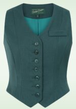 Die moderne Interpretation eines Klassikers: Wolle in dunklem Petrol und mit einem raffinierten Schnitt – für höchst elegante Lagenlooks! Diese Wollweste ist unglaublich vielseitig und kann sowohl zu einem verspielten Swingrock als auch zu eleganten Hosen getragen werden. Sie ist aus einer weichen und geschmeidigen petrolfarbenen Wollmischung gefertigt und vollständig gefüttert.    * Weste  * Ärmellos * V-Ausschnitt * Knopfleiste  * Angedeutete Brusttasche * Gefüttert * Ideal dazu: die passende Hose für einen stylischen Look von Kopf bis Fuß