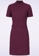 Lass dich von Tessa in die 60er Jahre entführen! Das Kleid ist aus einem etwas dickeren, dehnbaren, grob gewebten, auberginefarbenen Recycling-Stoff hergestellt, der dir ein wunderbares Tragegefühl schenkt. * A-Linien-Schnitt * Leichter Stehkragen * Kurze Ärmel * Pattentaschen-Optik * Verdeckter Reißverschluss hinten * Recyceltes Polyester * Endet bei einer Körpergröße von 1,70 m knapp oberhalb des Knies * Exklusiv bei Topvintage erhältlich